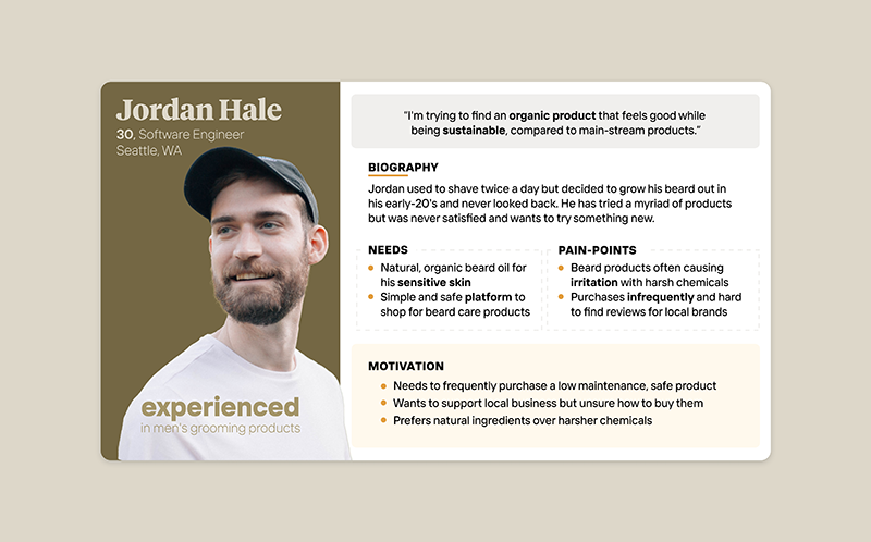My colleagues and I met with Beard Game Strong to gain more understanding about their company, as well as their goals for the future. We wanted to understand the brand’s beginnings, which would also help understand where they want to go.